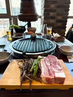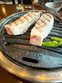 In Jeju Island, they grill ogyeopsal (five-layered meat) with skin attached instead of three-layered meat🔥