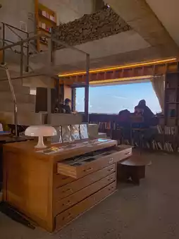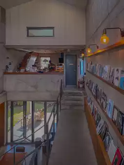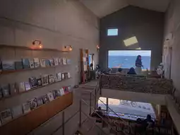 This is a cafe that people who like reading and taking pictures will love. The interior of the cafe is mostly made up of books and pictures. This place is in front of the ocean and is designed to match the ocean view. You can drink coffee while looking at the ocean. The interior is quieter than you think. It seems to be the best place for people who don't like noisy places.