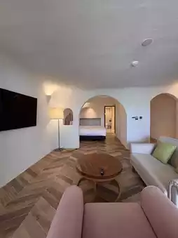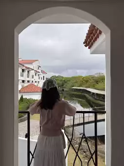 Eco Land Hotel, with its arched interior surrounded by green grass and a lake, has a swimming pool, playground, and kids zone, so there were many families visiting!