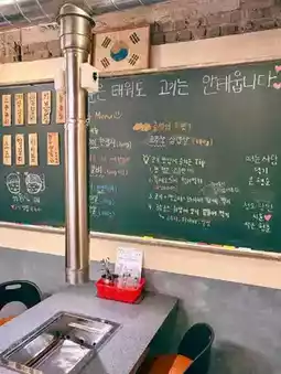 Upon entering Yeondong Gongyuksa, you'll be greeted by a Christmas tree made from beverage boxes and an old military truck filled with liquor bottles, creating a visually striking first impression. Next to the entrance, there are photo zones featuring rural-style farming tools and baskets, perfect for capturing memories with family or friends.