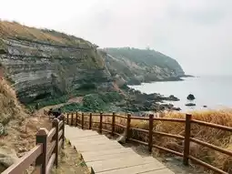 Located in Gosan-ri, Hangyeong-myeon, Jeju City, Suwolbong Peak stands at a height of 77 meters. There is a free parking lot available in front of the stairs leading to the observation deck. At the top of the Suwolbong Geotrail observation deck, there is a hexagonal pavilion where visitors can enjoy the scenery without being exposed to the strong summer sunlight. The view includes Chagwido Island in front and Sanbangsan Mountain and Marado Island behind. Additionally, there is an electric bicycle rental experience center in operation. Electric bicycles can be rented daily from 10 AM to 7 PM, with fees set at 10,000 KRW for 40 minutes (from Jagunae Port to Suwolbong Observation Deck) and 20,000 KRW for 60 minutes (from Chagwido Port to Windmill Village).