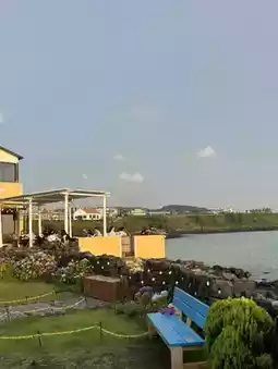 I enjoyed the beautiful scenery while walking along the Aewol Handam Beach Trail, one of the places I looked forward to the most during my trip to Jeju. 🌊 The clear emerald sea and the unique basalt coastline combined to create a picturesque landscape. In particular, the sunset over the sea at sunset was truly enchanting. 🧡 I was mesmerized by the ever-changing colors that colored the sky for a long time. The spring cafe I came across while walking along the trail added charm to the scenery, and the sea and sunset I saw from here felt even more special.
