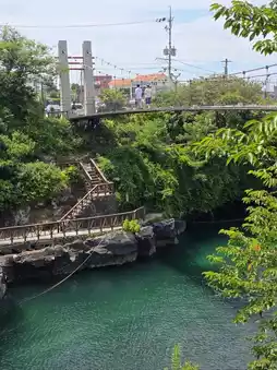 These are must-visit spots near Jeju Airport: Dodu-dong Rainbow Coastal Road and Yongyeon Valley. On sunny days, you can take beautiful photos here. Since both locations are close to each other, it's convenient to visit them together. Yongyeon Valley also features a suspension bridge, offering a great view of the sea from above! With the cool breeze, these spots are highly recommended for a summer trip to Jeju!