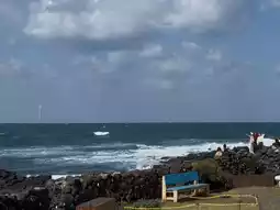 We had to order a drink each to get in, but the scenic spot was totally worth it. Settling into seats inside, we took in the breathtaking ocean views.