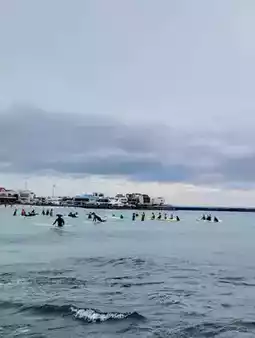 The stone walls spread across the fine sandy beach and the palm trees lined up like a tropical paradise create a serene space for relaxation.