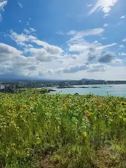 🌻Located on the mid-slope of Seoubong, an oreum (volcanic hill) right next to Hamdeok Beach in Jeju, there is a sunflower field that blooms in midsummer. The scenery of the sea combined with sunflowers is truly stunning.