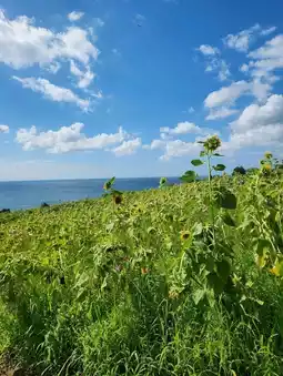 🌻During summer, when the sunflowers are in full bloom, the vibrant yellow flowers and the blue sea create a breathtaking view.