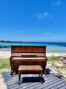 From one corner of the garden, the golden sea of flowers contrasts beautifully with the distant azure ocean, creating the purest color harmony. Here, there is no excessive noise, only the tranquility of nature and the tender fragrance of flowers. Walking through the garden feels like holding the entire summer in your hands, its warmth lingering for a long time.