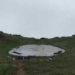 A photo with the crater lake in the background.