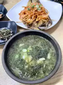 A small, unassuming restaurant. The fish is so crispy you can chew it, and the kelp soup is filled with fresh kelp leaves and is slightly spicy. Plus, the prices are so good, it's quite impressive for Jeju Island.