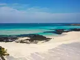 Gimnyeong Beach is famous for its expansive white sand and emerald sea. Its shallow waters and calm waves make it especially popular with families, and in the summer, it's bustling with swimmers and water sports enthusiasts. The beach is lined with cafes and restaurants, making it a great place to relax after a day at the beach. Its renowned sunrise and sunset views make it a popular destination for photographers. A stroll along the beach with the cool breeze will allow you to fully experience the charm of Jeju's ocean. 🐚