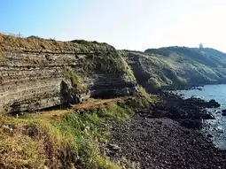 Located at the western tip of Jeju, Suwolbong is a beautiful geological site, a fusion of coastal cliffs and volcanic terrain. Along the trail, you'll be treated to spectacular views of the blue ocean and dark red volcanic layers. Designated a Global Geopark, it's also renowned for its stunning sunsets. 🌅