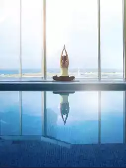 ✔️ The rooftop indoor pool offers a panoramic view of the airport runway.🛫