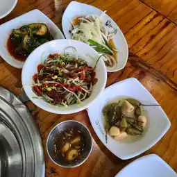 This is a great spot near Jeju Airport to enjoy authentic black pork barbecue. The menu offers a variety of options, including pork belly, assorted skewers with special cuts, whole ribs, and pork tomahawk, allowing you to choose according to your preference. The large skewers are fun to grill, combining meat, mushrooms, and vegetables, and the side dishes like fermented fish sauce, green onion salad, and fresh wrap vegetables are clean and satisfying. With generous portions and high-quality meat, this restaurant is popular among both locals and tourists. Its proximity to Jeju Airport makes it a recommended dining spot before or after your trip.