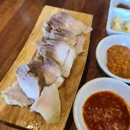 This restaurant near Jeju Shinhwa World and Donggwang Meat Market offers a hearty ssambap set meal. The ssambap set meal is popular, featuring a variety of ssam vegetables, boiled black pork, braised mackerel, and steamed eggs. The Dombe meat is also exceptionally tender and savory, with no gamey odor. The restaurant's clean interior and friendly staff make it a great choice for families. Open from 9 a.m., it's convenient for late lunches and dinners, and parking is readily available for easy access. The Dombe meat can take some time to cook, so it's best to arrive early.