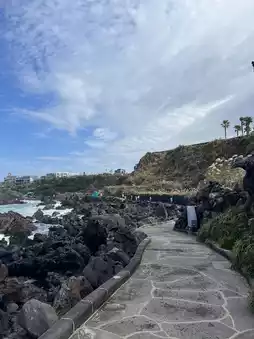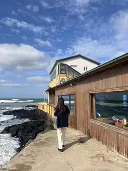 Kick off your day at Bomnal Cafe (open daily, usually 9 AM–7 PM), tucked away along the picturesque Aewol coastal road. Grab an outdoor seat for those unbeatable sea vistas—morning visits get you softer light and fewer crowds for those snap-worthy shots. While you sip, snap away at the pastel-colored facade and beachy decor (don’t miss the signature swing seat for the ultimate “insta-worthy” angle). Must-do: Try their homemade cakes with your latte. Tip: Parking is limited, so arrive early or opt for a taxi for hassle-free access. Jeju weather is famously windy—pack a light jacket, especially in the shoulder seasons.