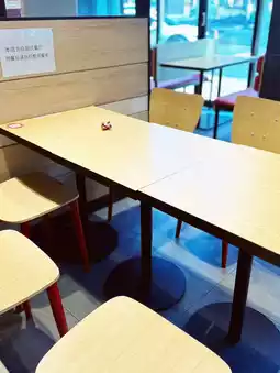 You can order at three self-service kiosks, and currently, you can receive chicken nuggets by completing a survey (1 survey per person, ๐ 4 nuggets).