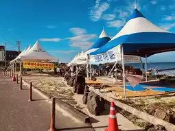 A distinctive feature of Sinheung-ri Beach is the presence of a lovely pine forest (송림) situated directly behind the sand. This grove of trees provides crucial natural shade and a wonderfully fragrant, cool retreat from the midday sun. It's an ideal spot for setting up a picnic or simply relaxing on a blanket while still enjoying the sea breeze. This combination of beautiful sand, clear water, and a natural shaded area creates an appealing and comfortable environment for spending an entire day by the sea.