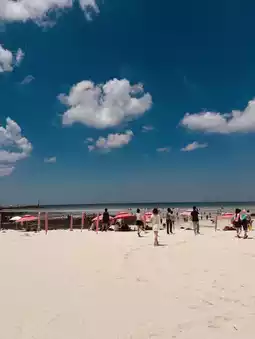 Gimnyeong Seonsegi Beach is visually stunning, largely due to the striking contrast between its elements. It features dazzlingly white sand and impossibly clear, translucent turquoise water, which is typical of Jeju's northern coast. However, the scene is uniquely framed by the presence of dark volcanic rocks and nearby wind turbines, adding a dynamic, modern contrast to the pristine natural beauty. This blend of pure, tropical-looking water with the rugged, volcanic landscape of Jeju makes for truly spectacular photography and an unforgettable visual experience.