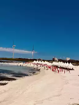 The appeal of Gimnyeong Seonsegi Beach extends beyond the sand. The surrounding area offers a lovely coastal environment perfect for a leisurely walk, connecting the beach to nearby attractions. In fact, it is located near the famous Gimnyeong Maze Park and the Manjanggul Lava Tube, making it a perfect spot to relax and cool off after a morning of exploration. This strategic positioning allows travelers to combine natural beauty and relaxation with Jeju's unique cultural and geological sights, creating a well-rounded and rewarding day trip.
