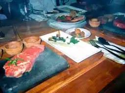 - Steak grilled directly on a hot stone! The owner will tell you!