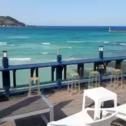 A restaurant serving steamed black pork while looking out over Hyeopjae Beach