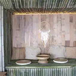 It was a slightly cloudy day, but despite that, it was a truly sensuous place. The interior felt like I was in a chieftain's village in the forest. The incense sticks burning, along with the interior, calmed my mind.
