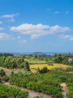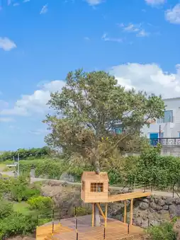 It means the upper field in Jeju dialect that makes you laugh! It is located high up, so you can see the ocean view, tangerine field view, and airplane takeoff and landing view💙