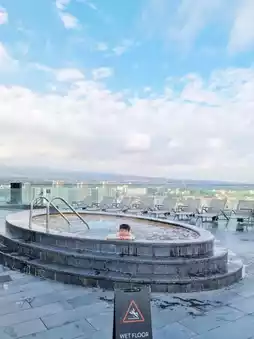 The outdoor swimming pool at Grand Hyatt Jeju can be used without worry even in the fall because there are plenty of Jacuzzis with warm water. You can enjoy the airport, airplanes taking off and landing, and the blue Jeju sea from the Jacuzzi that is over 40 degrees^^