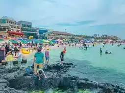 Since the water is shallow and the waves are weak, a significant number of families with children were traveling there. It seems like the best environment for families with children to come and play.👏