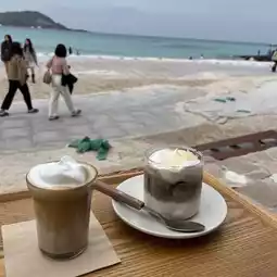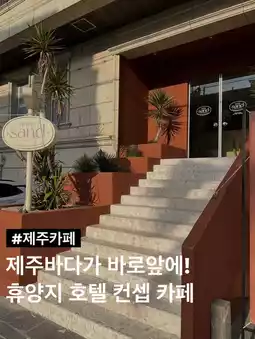 🌴I found a really pretty cafe! It's HotelSand, located right in front of Hyeopjae Beach. The most popular seats are definitely the outdoor seats in front of the beach ㅎㅎ (The turnover rate is higher than I thought, so it fills up quickly!!) A cup of coffee while looking at the emerald sea and smelling the ocean scent~ It's so relaxing and healing itself🍀