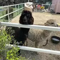 And!!!! There's an alpaca here!!! There's only two alpacas in a small cage, but you can see them up close! When we went, there was no staff member? So they let us see them for free! They even let us into the cage!! So we could see them up close!! Just be careful not to get pierced by an alpaca! Hase Yong