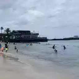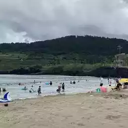 Even on a rainy day, Hamdeok Beach is truly beautiful.