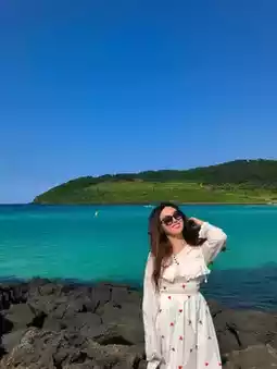 This is my favorite beach in Jeju Island. Hamdeok is especially white and emerald-hued. It's a place where photos turn out beautifully no matter where you take them, and it's a place that doesn't skimp on angles!! ❤️