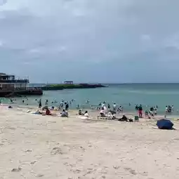 Hamdeok Beach, located on the eastern coast of Jeju Island, is renowned for its beauty! Because it's close to the airport, it's a popular stop for backpackers. There are many shops and ocean-view cafes along the beach, making it a great place to relax. 😊