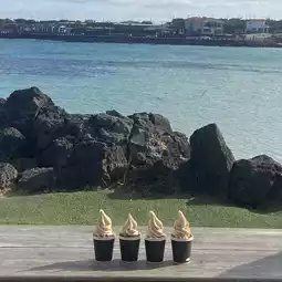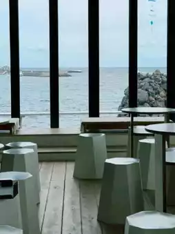 Blanc Rocher is a café that sells desserts made with peanuts, a specialty of Udo. All walls are made of glass, and there are outdoor tables, so sipping coffee while looking out at the ocean is a treat. Their most famous item is the peanut ice cream! Priced at 6,500 won, the rich ice cream is topped with whole peanuts for a double dose of flavor! The Udo Peanut Cream Latte (8,500 won), a sweet latte topped with peanut cream, is also delicious. 🥰