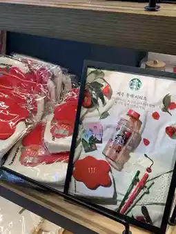 This is Starbucks Hyeopjae branch located right in front of Jeju Hamdeok Beach. When you enter Starbucks, the view of the emerald Hyeopjae Beach through the large glass windows is really pretty. If you use the stairs right next to it, you can go straight to the beach. They sell Jeju-only drinks and various desserts such as matcha, baeknyeoncho, carrots, and black sesame, so it's fun to try them one by one☺️Check out the camellia series tumblers and pouches that remind you of winter that can only be purchased in Jeju🥰