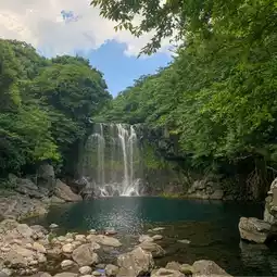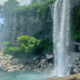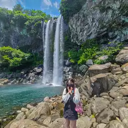 📍The waterfall that's good for taking pictures is Cheonjeyeon Falls