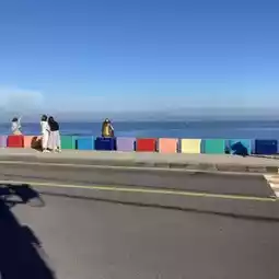 Rock blocks painted in rainbow colors. From here, you can just stare at the ocean.