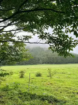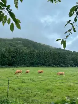 Cows freely grazing even in the rain,