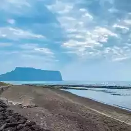 If you go down to Jeju Gwangchigi Beach, you can see Seongsan Sunrise Peak, and especially during low tide, you can see places that were not visible because they were covered by the seawater. It was really beautiful. And as expected from a volcanic area, the sandy beach is dark^^ The scenery is pretty, and it was interesting to see unique terrain and nature that can only be seen in this area. It is a beautiful place even in winter! 😍👍