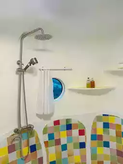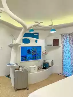 It is a private, independent design with no walls or corners, a cove type, so you can stay comfortably, and there is an outdoor jacuzzi and barbecue area using jewel tiles
