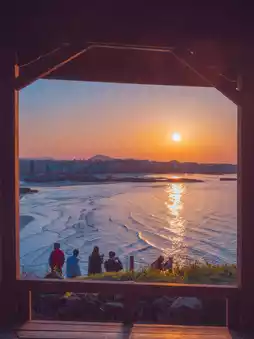 Hamdeok Beach seen from Seoubong, a famous sunset spot in Jeju
