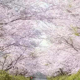 Jeju Island Noksan-ro - the most beautiful cherry blossom viewing spot in spring, pink cherry blossoms and yellow rapeseed flowers complement each other