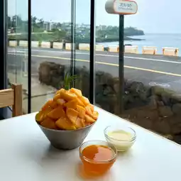 This is a place where you can eat delicious desserts made with Jeju-grown raw mango! It's a great place to go for a drive or date on the coastal road~