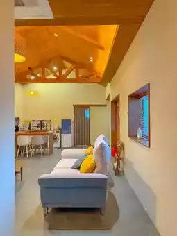 The warm wood-tone interior creates a cozy and comfortable atmosphere,