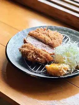 The food is cooked to order, so it may take some time, but they provide appetizers like porridge or soup while you wait. If you've had black pork tonkatsu before, you should try their fresh fish katsu, which is made from freshly prepared fish. The texture and taste are on a different level compared to frozen ones, and it will change your perception of fish katsu.