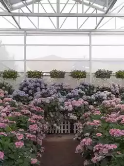 The hydrangeas that grew beautifully in the warm greenhouse were really pretty :)
