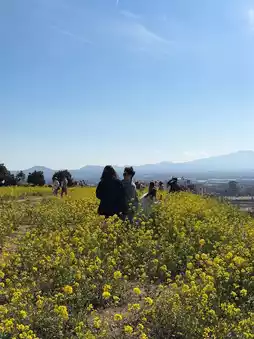 -A rape blossom field walking trail with a view of Hamdeok Beach