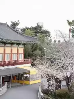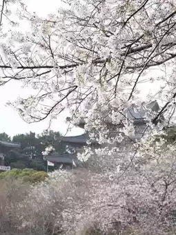 In early April, when the flowers are in full bloom, the red walls, green tiles and stone steps in the temple are dotted with pink and white cherry blossoms. The wind blows and the "cherry blossom rain" floats, falling into the medicinal spring pool and creating ripples, full of Zen 🎐. Must-see spots: